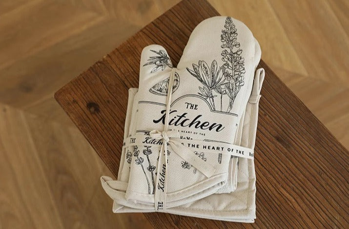 هذه المجموعة توفر حماية شاملة للأيدي أثناء التعامل مع الحرارة في المطبخ، وتتيح للمستخدم القدرة على القيام بالمهام المطلوبة بأمان وسهولة.